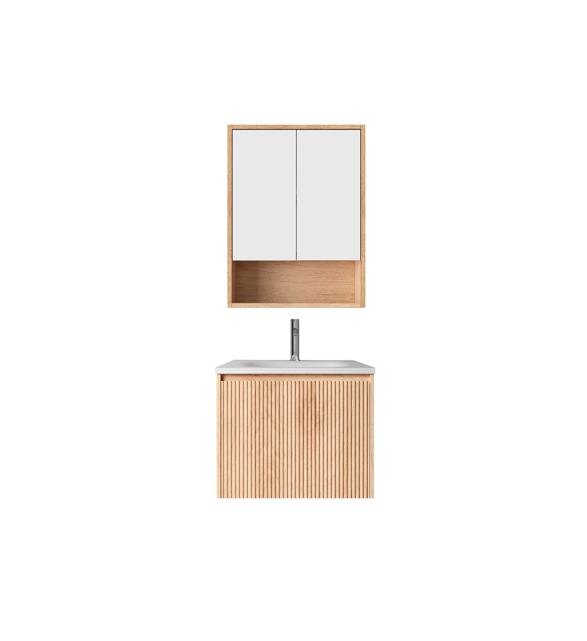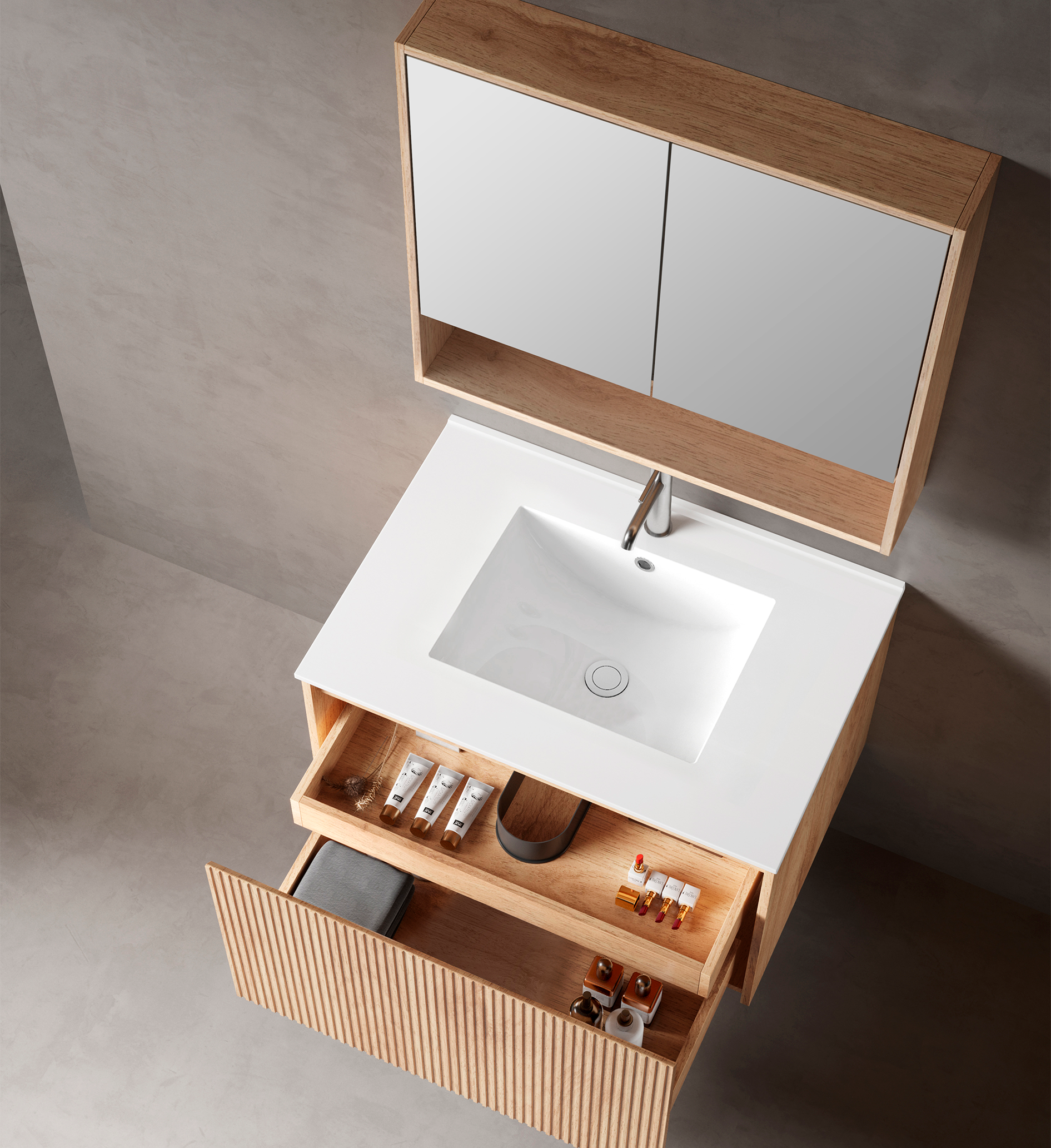 Mobilierul de baie din placaj furniruit este o alegere elegantă și funcțională, potrivită pentru un spațiu modern și bine organizat. Acest tip de mobilier combină estetica naturală a lemnului cu durabilitatea oferită de placajul furniruit, având avantajul de a rezista bine în medii cu umiditate ridicată, dacă este tratat corespunzător.
